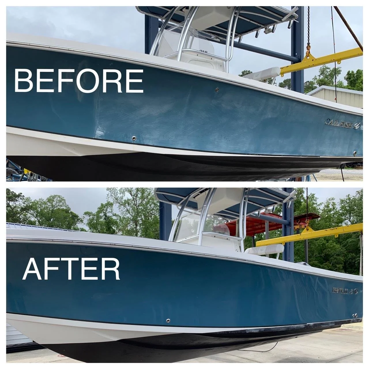 A step above your average boat washing. We use top of the line wash & wax products which take out all the salt water particles remaining and helps remove chalkiness off your boat while protecting the gel-coat. Then we take it a step further and machine polish your vessel with our professional marine wax that provides 3 months of protection.